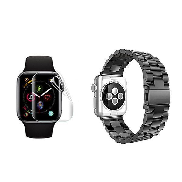 Kit Bracelete de Aço + Ferramenta + Película de Gel Full Cover Para Apple Watch Ultra 3 - Preto
